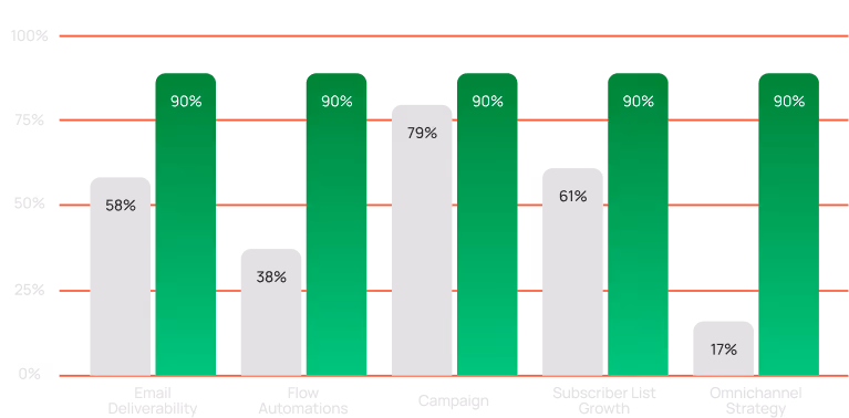 We look at 5 core areas within your account including: email/SMS deliverability, flows, campaign performance, list growth and omnichannel strategy. Based on our assessment, we'll make data-driven suggestions for improvement. You're free to implement these yourself or work with our team directly to spearhead your ROI.